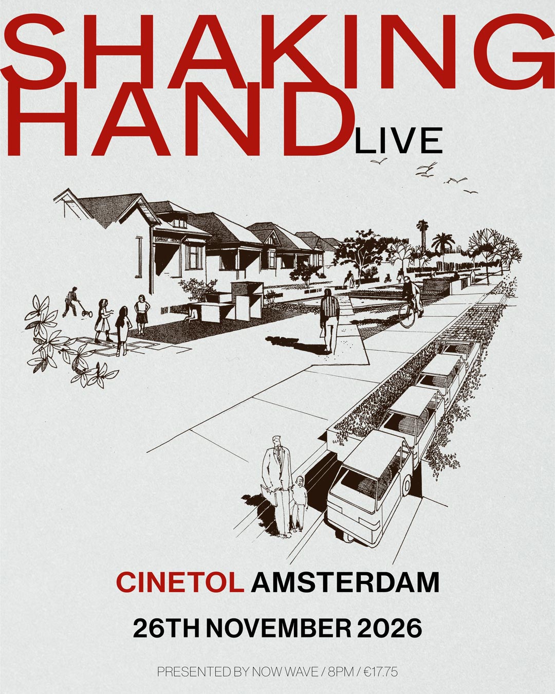 Shaking Hand is een trio uit Manchester dat lange, langzaam opbouwende post-rock maakt in meerdere stemmingen en maatsoorten. Ze halen inspiratie uit modernistische architectuur, Amerikaanse alternatieve muziek uit de jaren 90 en midwestern emo. Het muzikale DNA van de band loopt via experimentele gitaaracts als Women, Slint, Sonic Youth, Pavement en Ulrika Spacek, in balans gebracht met het melodische gevoel van Big Thief en de dynamische intimiteit van Yo La Tengo.